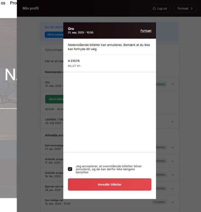 5. Herefter skal du bekræfte, at du ønsker at annullere den pågældende billet.
