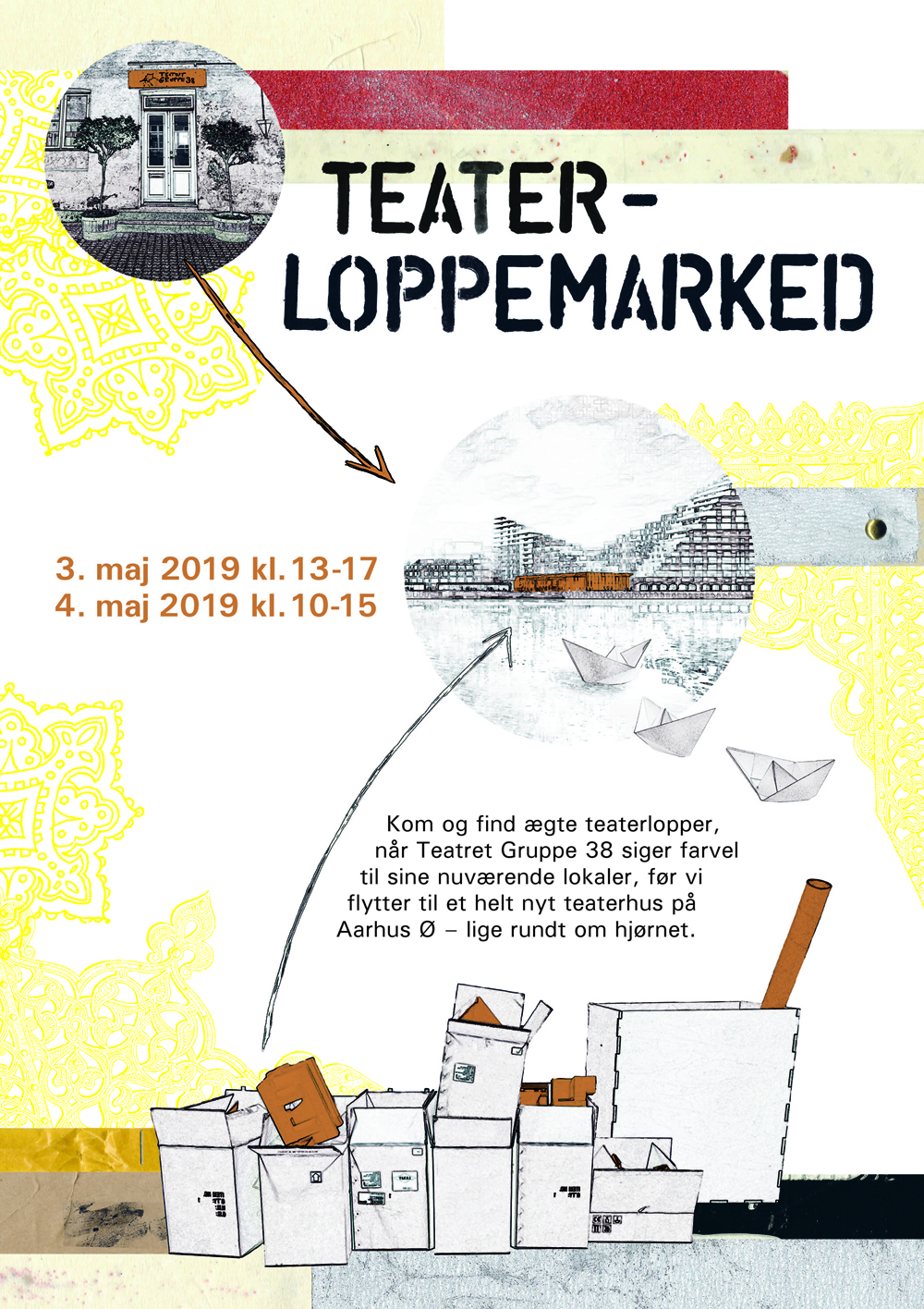 Kom og find ægte teaterlopper, når Teatret Gruppe 38 siger farvel til sine nuværende lokaler, før vi flytter til et helt nyt teaterhus på Aarhus Ø – lige rundt om hjørnet. Teatret tager ærbødigt afsked med Mejlgade ved at afholde et hyggeligt marked i vores teatersal, hvor vi sælger ud af alt det, vi ikke tager med os, når vi skifter adresse.